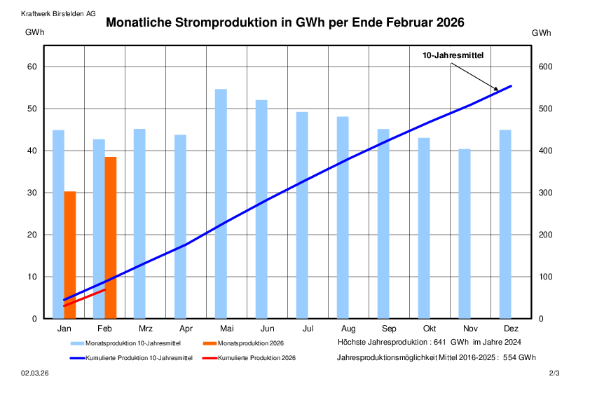 Monatliche Stromproduktion in GWh