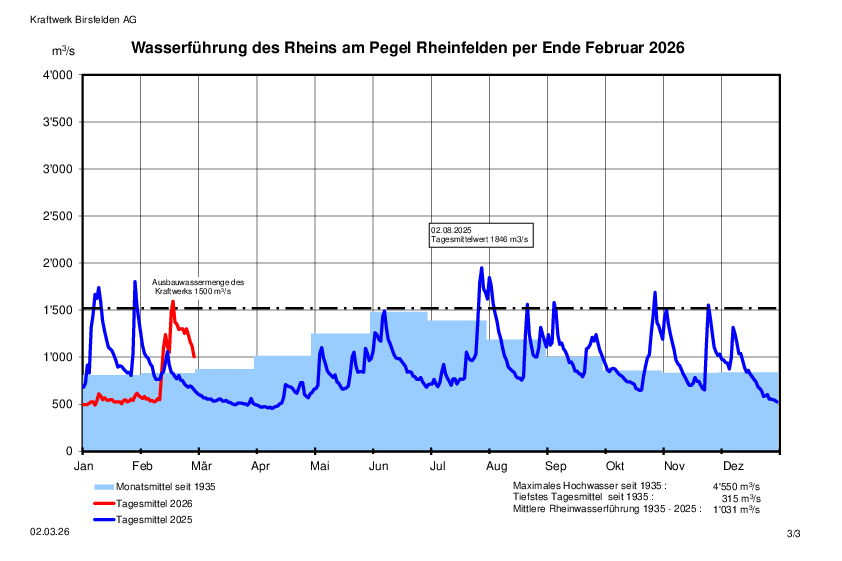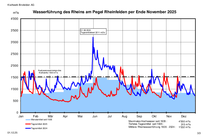 Wasserführung des Rheins 2025